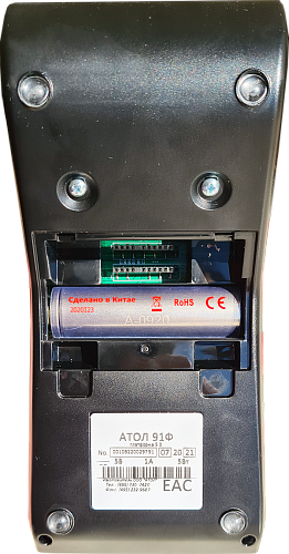 Кассовый аппарат АТОЛ 91Ф оснащён аккумулятором, что позволяет работать без подключения к компьютеру и без подзарядки 2-3 дня.