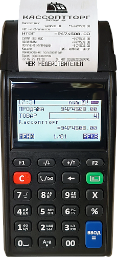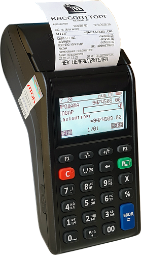 Легкий мобильный (переносной) кассовый аппарат с кнопочной клавиатурой и встроенным аккумулятором.