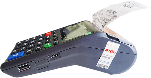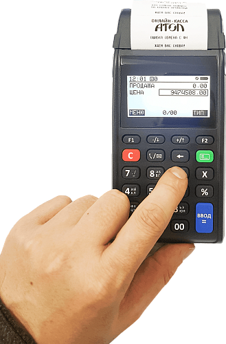 Легкий мобильный (переносной) кассовый аппарат с кнопочной клавиатурой и встроенным аккумулятором.