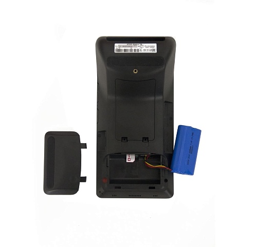 У сигмы есть встроенный аккумулятор, заряда которого хватает до 5 ч. автономной работы. Крышка надежно закреплена, но в то же время легко поддается. Внутри установлены 2 аккумулятора, которые подключаются через шлейф, здесь же находятся разъемы для SIM-карты и карты памяти. Там же, на тыльной стороне находится отсек для фискального накопителя. Крышка отсека не требует вскрытия и легко снимается, это ускоряет и облегчает задачу при первичной установке фискального накопителя и его последующей замене.