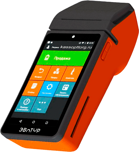 Мобильный кассовый аппарат + банковский терминал в одном устройстве.