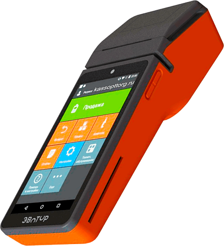 Мобильный кассовый аппарат + банковский терминал в одном устройстве.