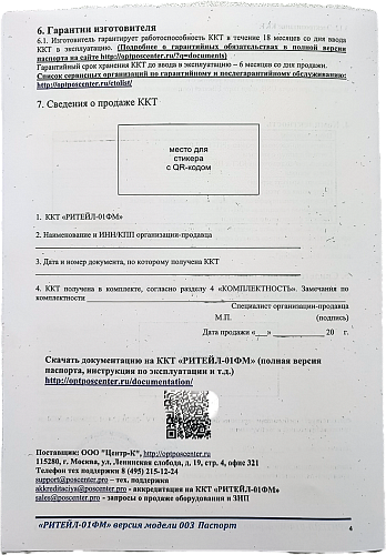 • Позволяет обновить ваш Ритейл-01Ф до версии Ритейл-01ФМ
