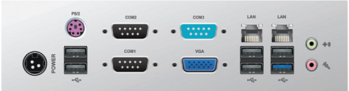 COM (RS-232) / DC Jack / Ethernet / Mini PCIe / PS/2 / RJ-11 / RJ-45 / USB / VGA / WiFi (опция)