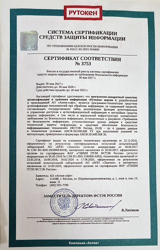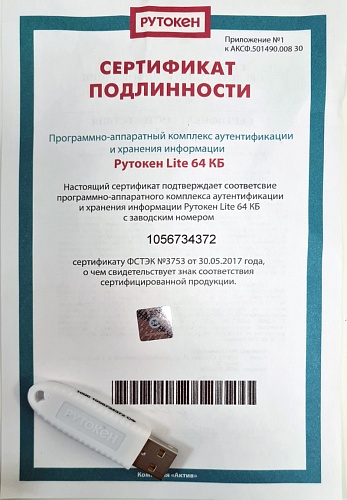 ruToken 2.0, 64 КБ, серт. ФСБ (ЕГАИС): защищенный носитель для ЭЦП